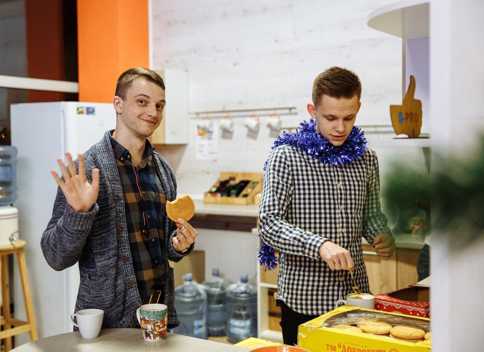 Компания одна из лучших в городе – здесь есть все для комфортного труда: просторное рабочее место, игровая комната с теннисом, футболом и спортивным снаряжением, окрыляющая кухня с едой, кофе и т.д. Лаунж зона для коллективного отдыха, курение кальянов при обсуждении интересных тем. Или же свободное время можно провести еще продуктивнее и полезнее – шлифовать свои навыки. Компания в этом помогает своим сотрудникам организуя корпоративное онлайн обучение на сайтах: «coursehunter.net», «laracasts.com», «egghead.io» из разных сфер. Также есть возможность посещать занятия английского в офисе и онлайн с носителями языка от уровня Elementary до Upper-Intermediate.