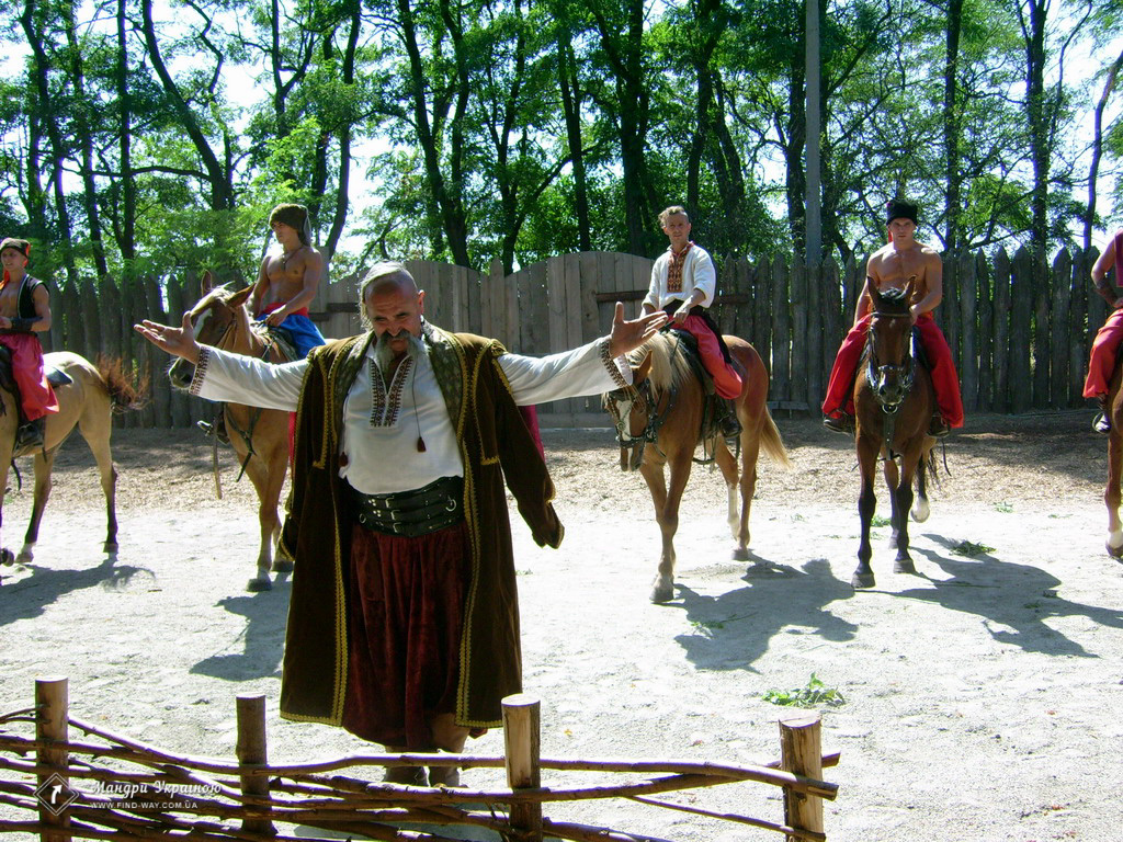 Кожен може відчути, яким було життя козака, скуштувавши традиційне українське частування у ресторані з дуже символічною назвою «Козацька залога». Після цього проїхатися верхи на конях, бо тут є школа верхової їзди, де можна пройти навчання і стати досвідченим скакуном. У кінного театру «Запорозькі козаки» є чим похвалитися – це виставка зброї часів козацьких війн.